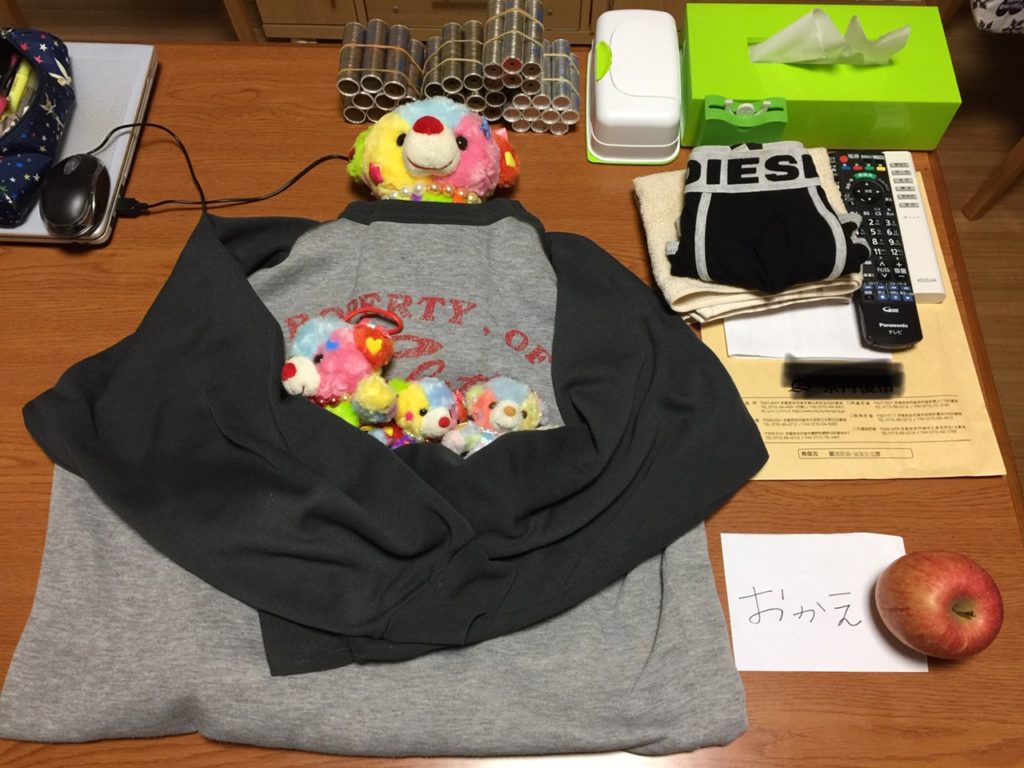 今日は、そんな僕のトレーナーを装着し、また、小さな家族たちを抱擁しながら迎えてくれました。